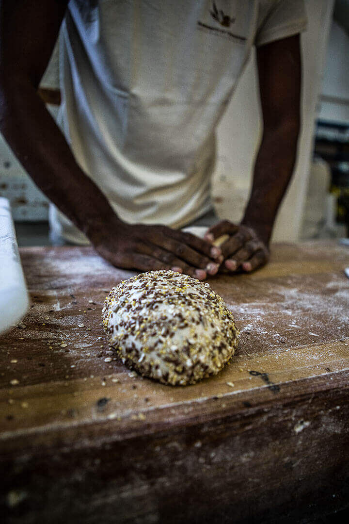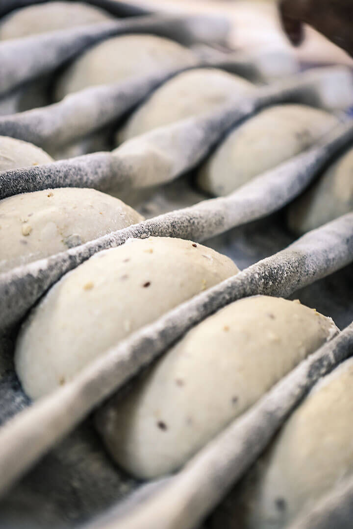 les onze employés de la petite manufacture produisent à présent 2000 pièces par jour. Dans le respect des traditions et avec un souci constant de qualité, les pains sont façonnés à la main, le levain nourri avec beaucoup de soin et les douze heures de fermentation, scrupuleusement respectées.